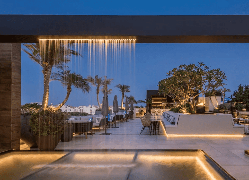 Meble doskonale komponują się z atmosferą, oferując komfortowy wystrój tarasu, który w pewien sposób uchwyca chill-outowy glamour, który Puerto Banús prezentuje w sposób tak swobodny. Tutaj łatwo można spędzić godziny na piciu drinków i rozmowach, w swojej bańce ponad zgiełkiem poziomu gruntu, podczas gdy mewy przelatują poniżej, z jachtu na dach i z powrotem, a chmury wędrują z gór Sierra Blanca w stronę morza i znikają.