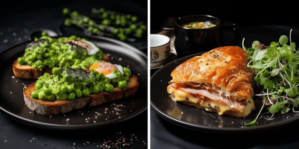 Chleb Truflowy na zakwasie z awokado i jajkami sadzonymi – Pieczony Croissant z szynką/turkey i serem