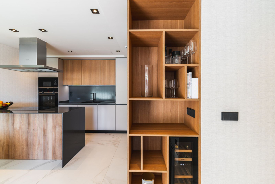 The interior is maintained in a subtle, bright tone. In the interior there are many interesting light plans and lots of sun. Bright floor, beautiful furniture, high-class finishing materials everywhere.