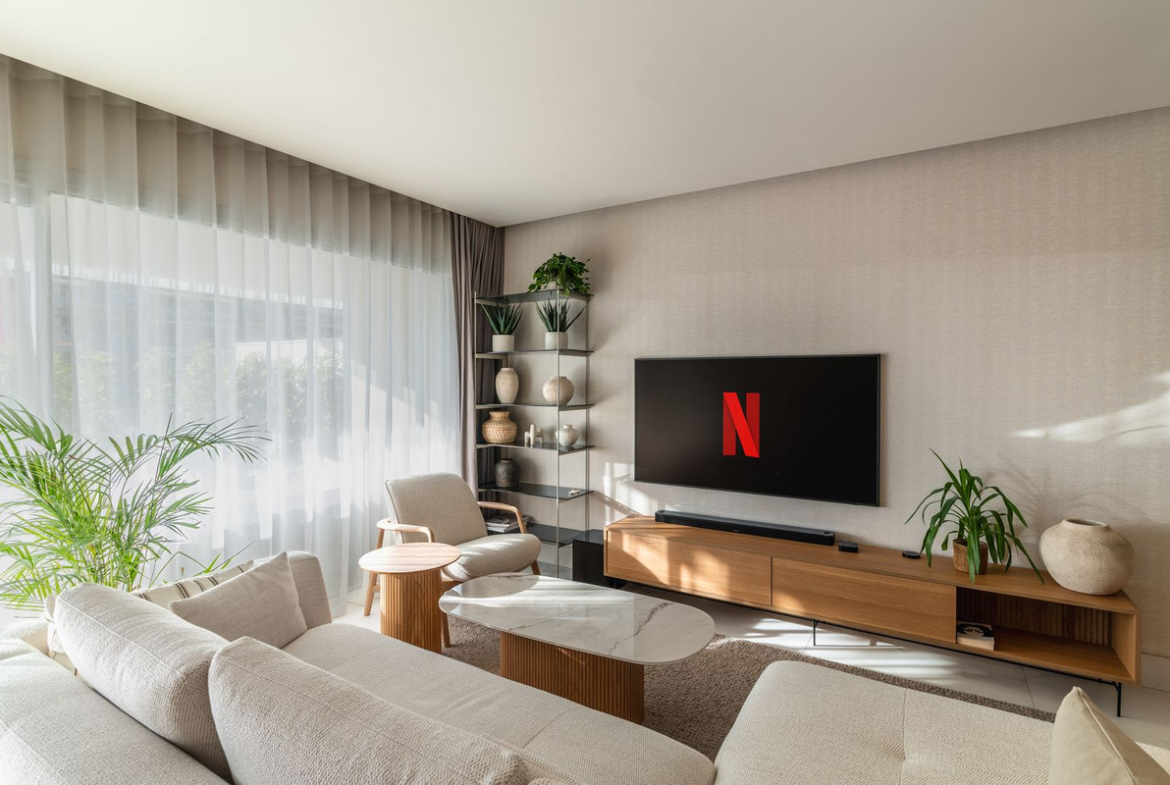 An apartment of refined elegance, beautifully furnished. Large windows and noble door joinery make a strong impression. The spacious living room connected to the kitchen provides a very large space for everyday life. To add charm and atmosphere, you can slide the wide doors and enlarge the space by an additional 36m2 of a wonderful terrace. The living room has a dining and lounge area equipped with high-quality Scandinavian furniture. A large spacious terrace with a west orientation from which there is a wonderful view of the modernly designed common area with a large swimming pool and the park is a great advantage of this apartment. In addition, there are three comfortable bedrooms, including a master bedroom with a separate area and direct access to the terrace. Two bathrooms with additional heating. In the center of the apartment there is an elegant kitchen, equipped with Siemens household appliances, sintered countertops and plenty of storage space. The apartment also includes a parking lot in the garage hall and a storage room.
