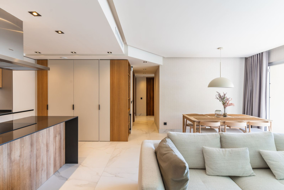 On the first floor of the noble, prestigious Terra Mare Residence there is a spacious and well-lit apartment with a west orientation with an area of 155 m2. Located at an excellent distance from both the beach and the center of San Pedro de Alcantara. This gives full opportunities to enjoy the charms of the sea beaches, and at the same time provides intimacy and a breath of fresh air from the noise of the main promenade.