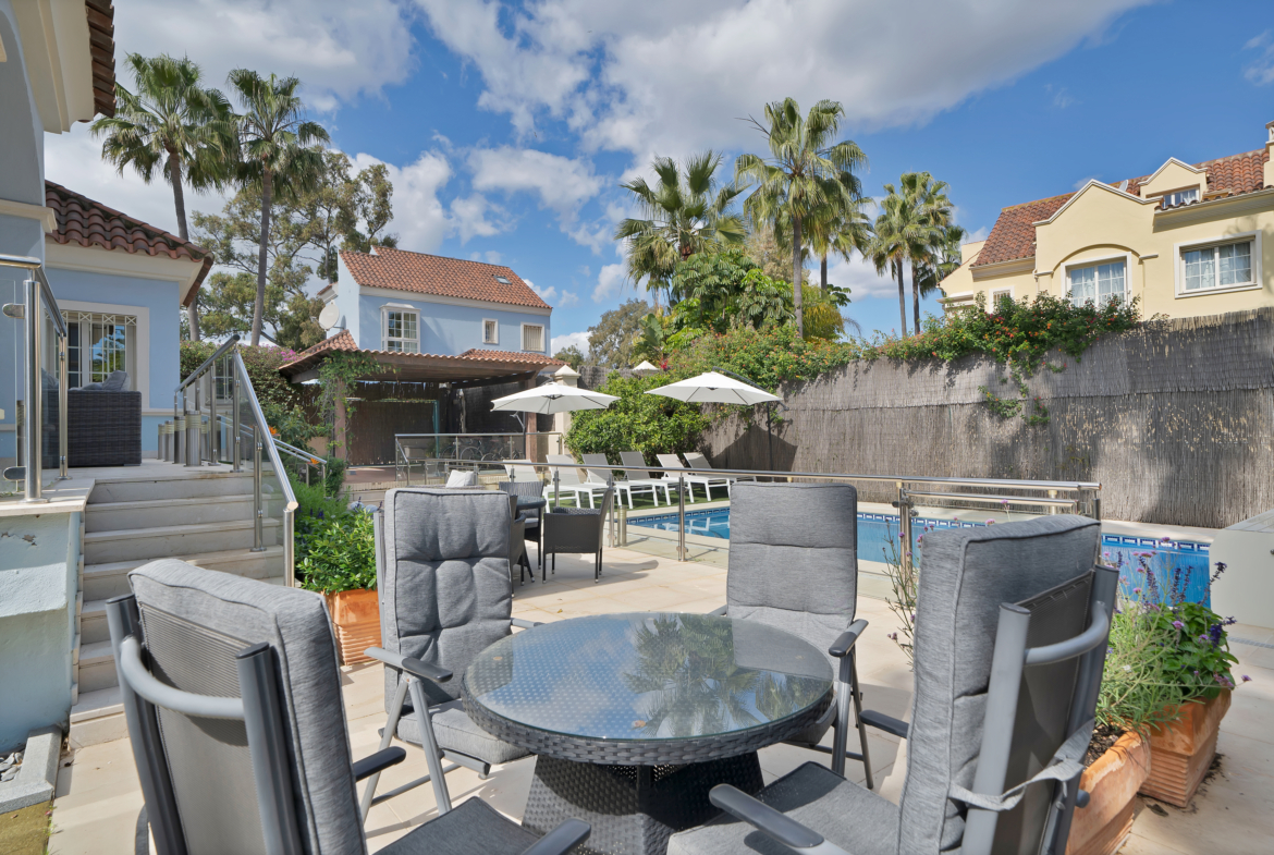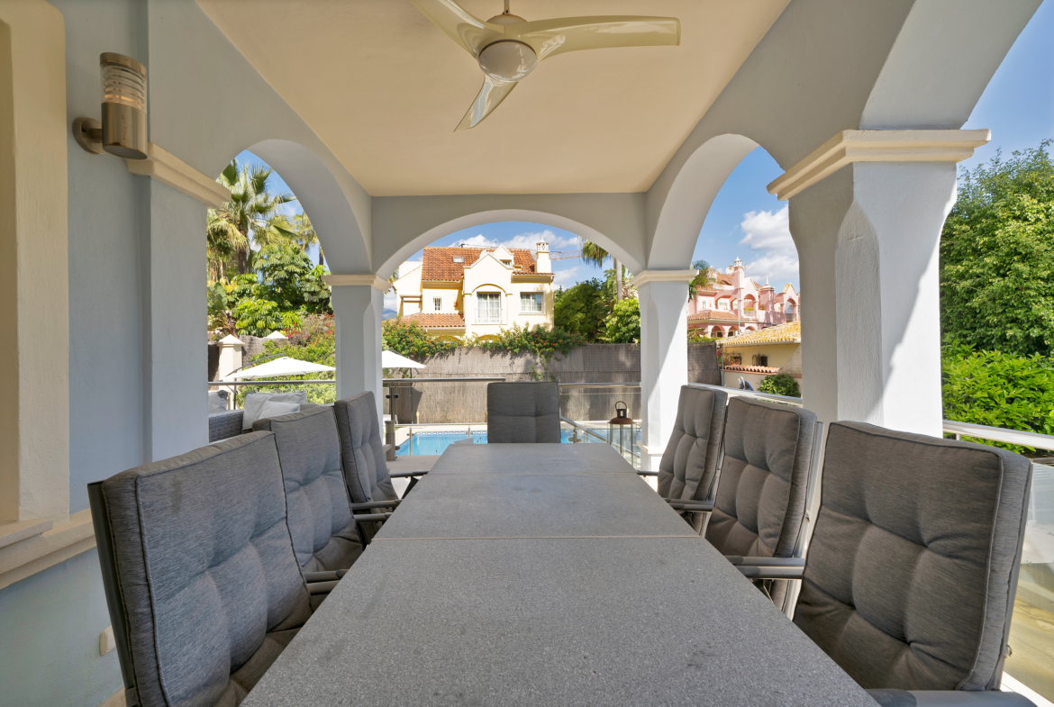 Zaledwie 50 metrów od plaży znajduje się w pełni odnowiona, 7-sypialniana willa w zabudowie bliźniaczej z 3,5 łazienkami – idealne połączenie luksusu, komfortu i doskonałej lokalizacji.