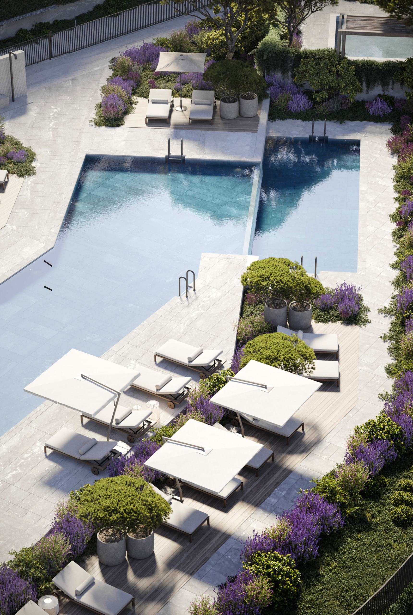 - Garden / Sky Villas: wnętrza do ok. 233 m², tarasy do ok. 153 m², prywatne ogrody nawet powyżej 500 m²