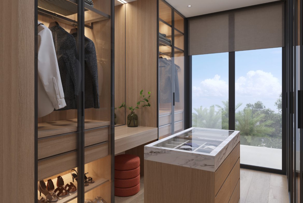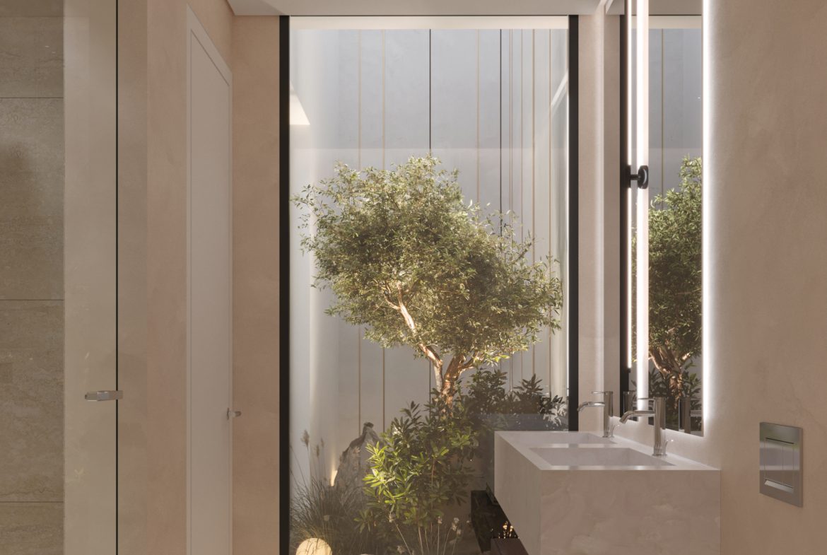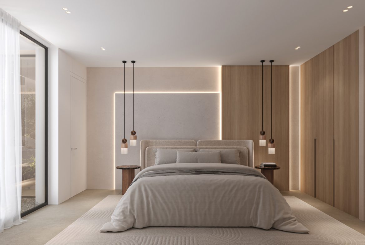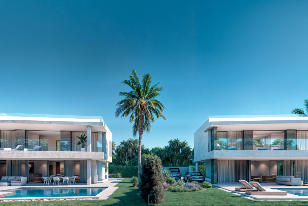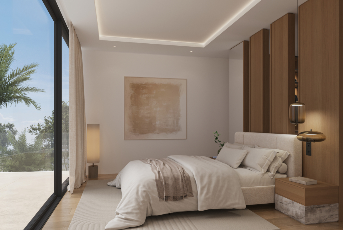 - 5 sypialni, 4+1 łazienki w każdej willi; układ zaprojektowany z myślą o świetle dziennym i prywatności