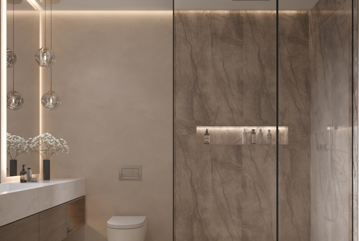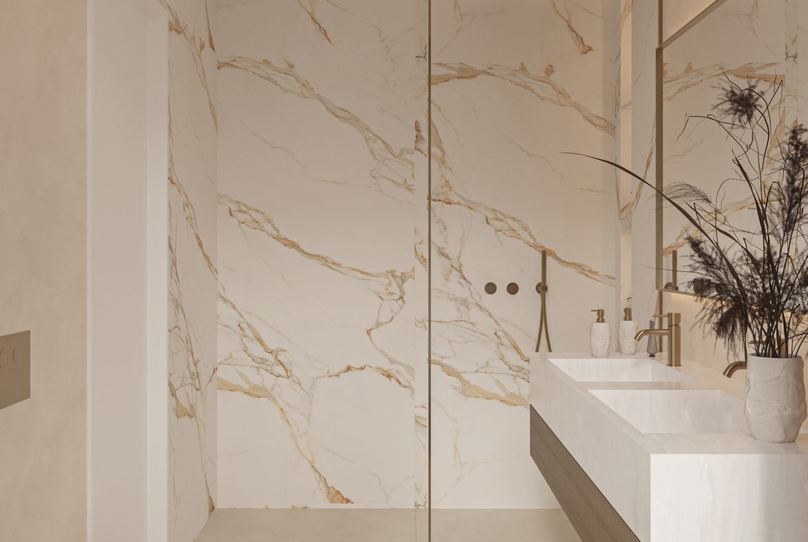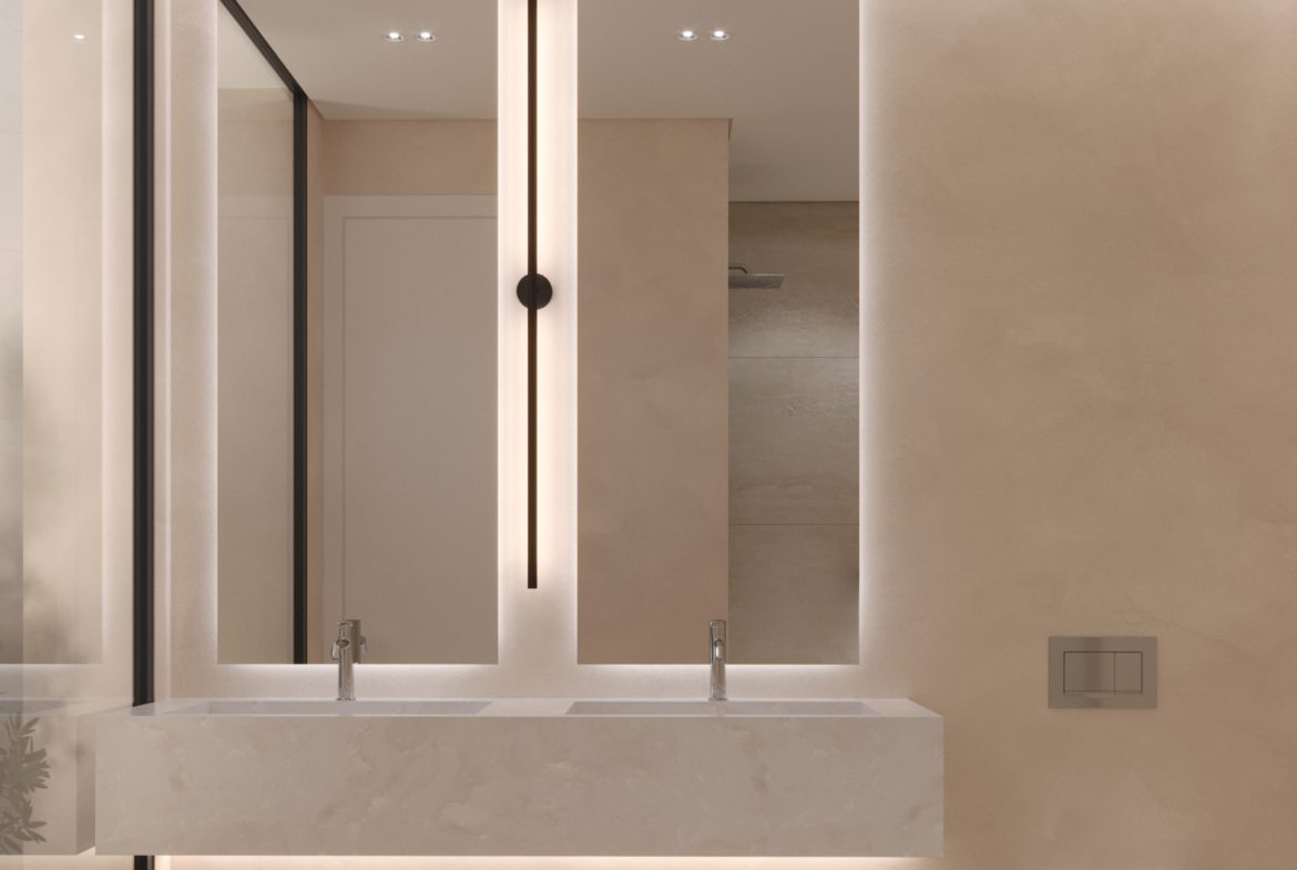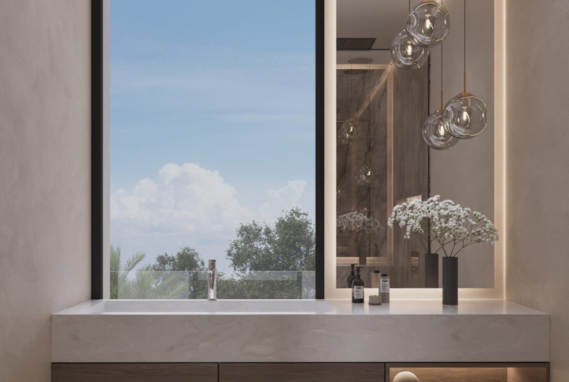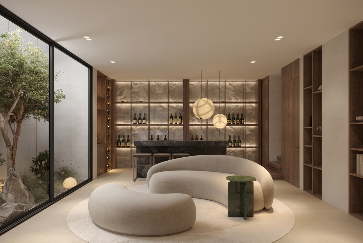 - 5 sypialni, 4+1 łazienki w każdej willi; układ zaprojektowany z myślą o świetle dziennym i prywatności