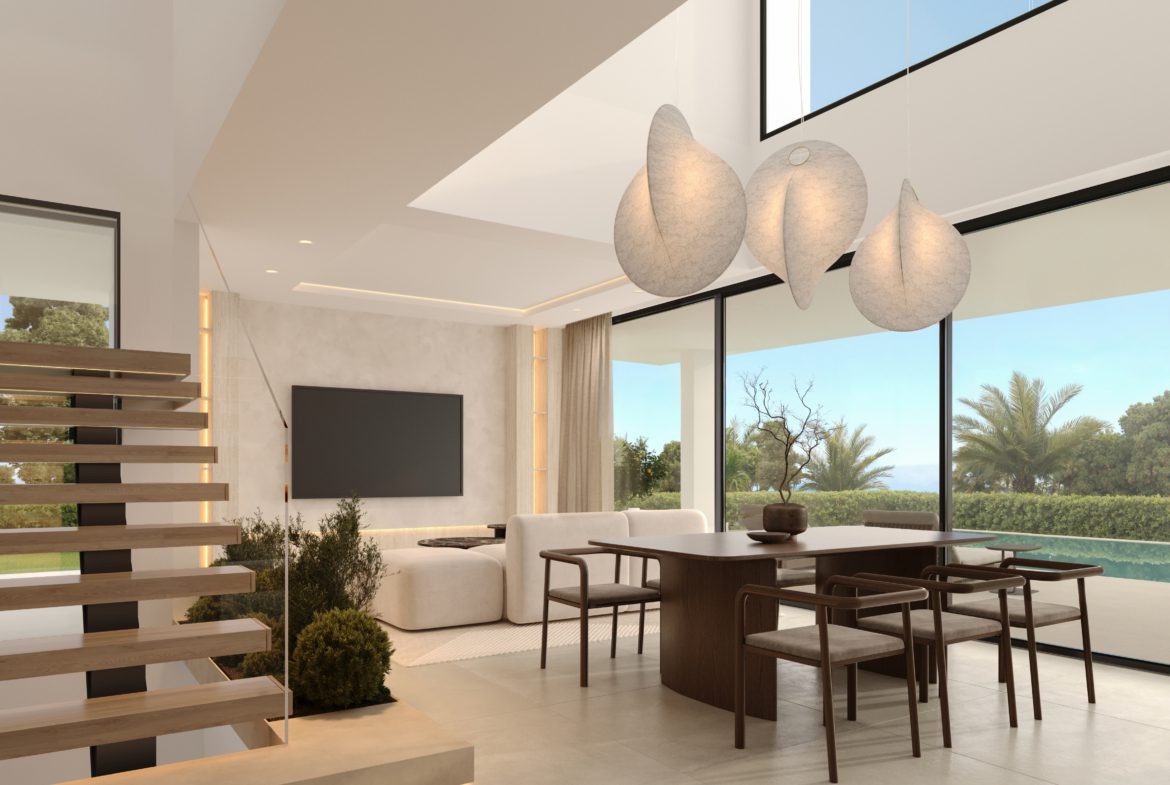Położone między Esteponą a San Pedro de Alcántara, kilka minut od plaż Casasola i Atalaya oraz pól golfowych, te dwie współczesne wille tworzą kameralną enklawę życia w wysokim standardzie. Otoczone zielenią, zorientowane na zachód, oferują popołudniowe słońce, panoramiczne tarasy i płynne przenikanie wnętrz z ogrodem.